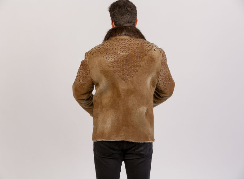 Black Shearling with leather trim with black beaver fur.
