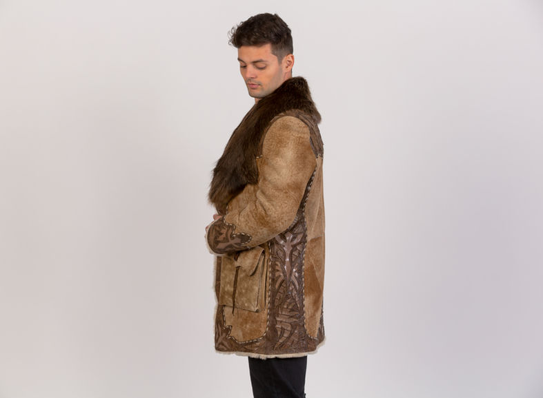 Stony shearling with Cayman and stingray trim with beaver fur.