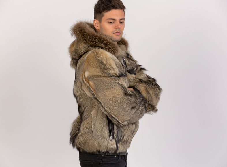 Full skin coyote fur with hood and leather trim