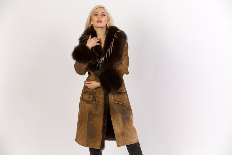 Camel brick Italian Lamb with Fox fur and Goat trim